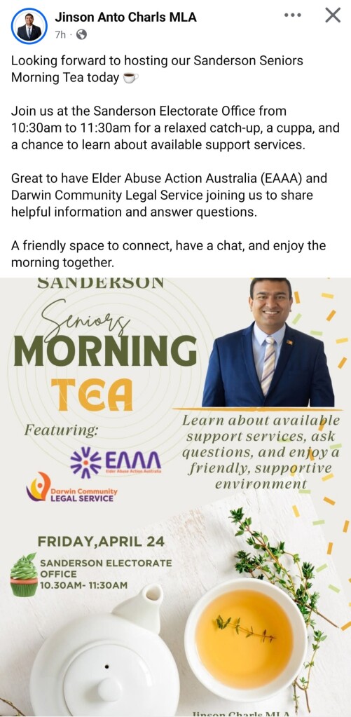 Today, Friday 24th April 2026 web attended an informal morning tea at the minister for senior’s electorate.