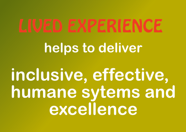 • Improving System Design: Involving people with lived experience in, for example, mental health services or social work, ensures that care is recovery-focused, compassionate, and directly addresses the needs of the users.